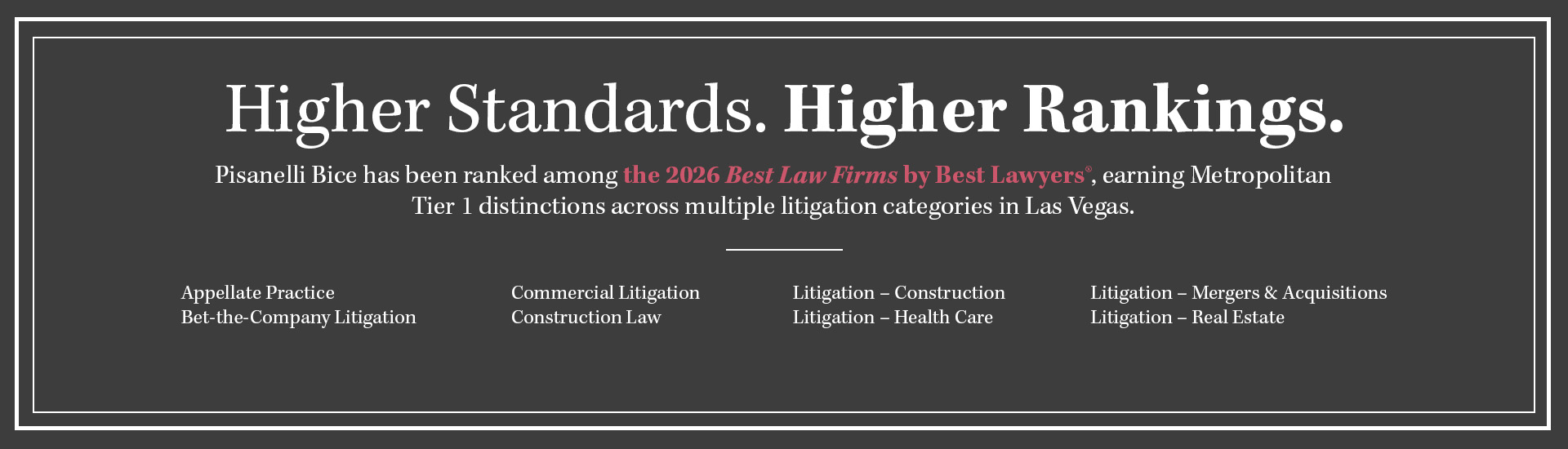 Pisanelli Bice Receives Tier One Rankings in U.S. News – Best Lawyers “Best Law Firms” for 2026